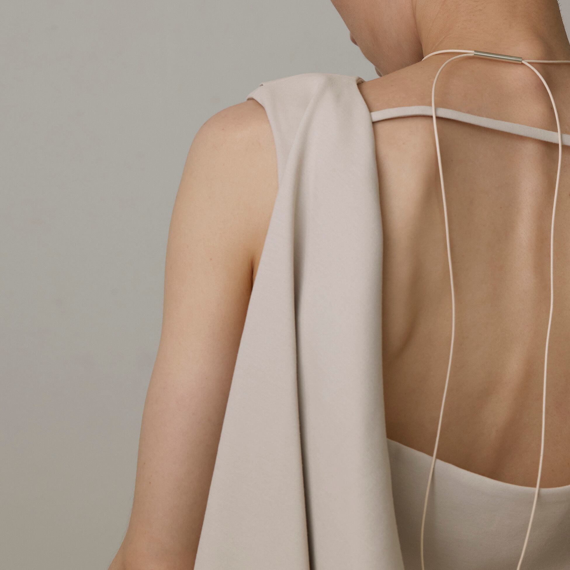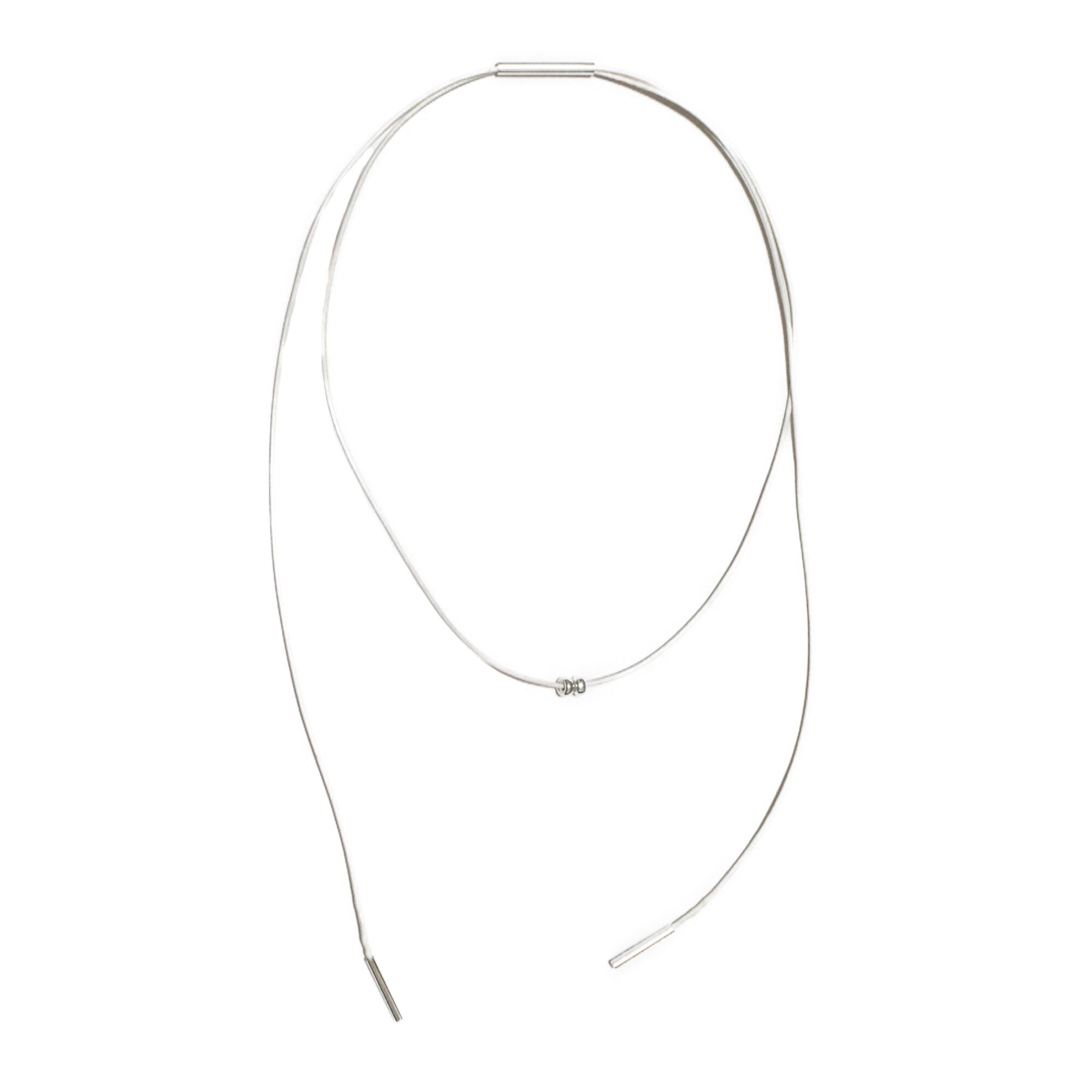 小さなシルバービーズを湧き上がる泡に見立てたコードチョーカー。 無機質なパイプと組み合わせ奥行きを感じるデザイン。 長さが調整出来るので、いろんいろなスタイリングが楽しめます。 サイズ / 長さ 120cm 素材 / Silver925 18Kコーティング、ロー引きコード 重さ / 4g Made in Japan